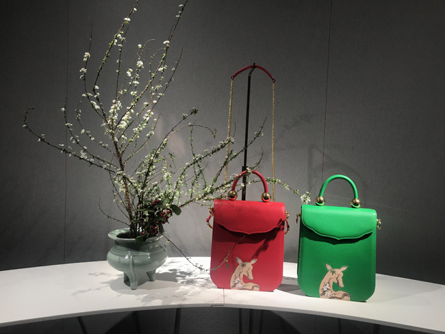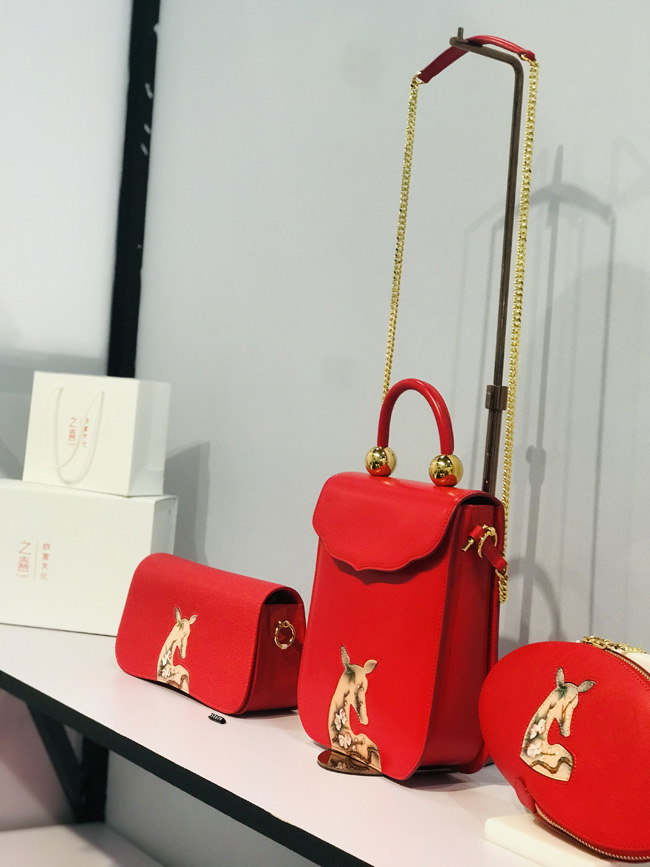 Anna之喜是故宮博物院授權(quán)合作唯一高端皮藝品牌。此次在展會陳列包款為「紫禁瑞鹿」系列及之喜&故宮聯(lián)名出品「千里江山」「吉慶有余」「如意海棠」中國盤系列!紫禁瑞鹿系列產(chǎn)品創(chuàng)作靈感來自《清宮獸譜》鹿圖,在傳統(tǒng)文化中,“鹿”為神奇之瑞獸,“鹿” 與 “祿”諧音,身姿神圣而高貴,寓意“福祿”,設(shè)計師以故宮博物院藏品 《清宮獸譜》 中的瑞鹿圖為產(chǎn)品圖案設(shè)計原型,提煉“鹿”剪影的靈動外形,結(jié)合梅花枝頭寫實手法,將傳統(tǒng)美學與當代藝術(shù)設(shè)計結(jié)合。「千里江山」中國盤,圖案來源:故宮博物院館藏北宋《千里江山圖》,產(chǎn)品亮點:秉承簡約、精致、卓越的設(shè)計理念,將東方雅致生活美學與歐洲傳世皮藝制作工藝相結(jié)合,再經(jīng)雕刻師手工雕刻,彩繪師手工描繪用于產(chǎn)品設(shè)計當中!